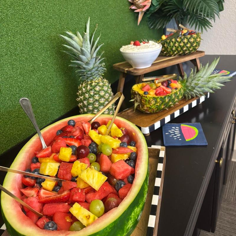 Coffee, Freshly squeezed OJ and fresh brewed teas and lemonades available. Want a Mimosa or Bloody Mary bar? We can do that too!